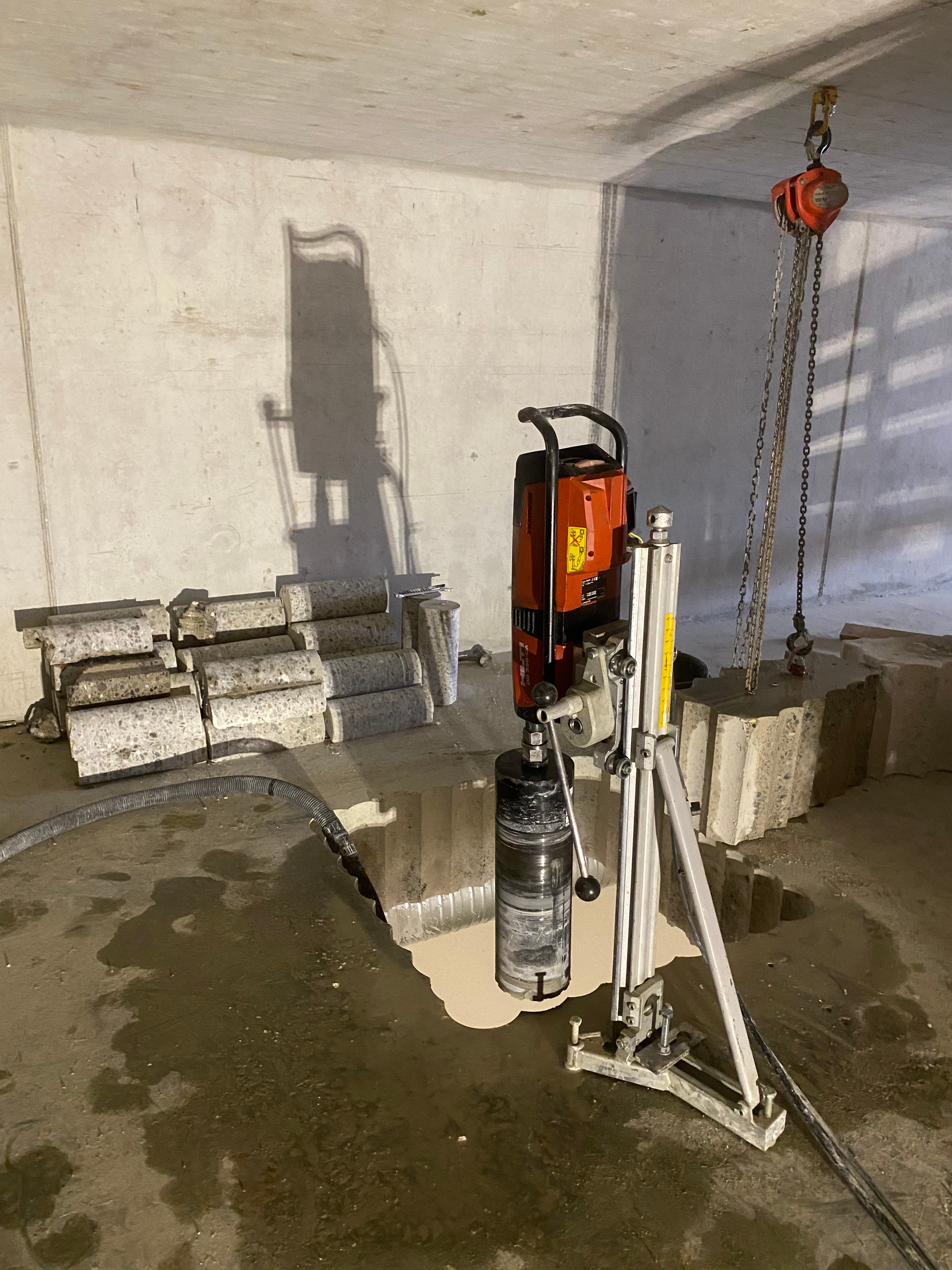 Idealerweise sind die Bohrstellen frei zugänglich und es liegen Informationen über Leitungen oder Bewehrung im Beton vor. Falls nötig, übernehmen wir auch die Beurteilung vor Ort und beraten Sie zur optimalen Vorbereitung.